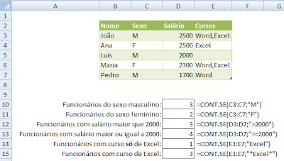 A função CONT.SE é tão útil, mas tão útil, que fiquei surpreso hoje ao perceber que eu ainda não tinha explicado essa função para vocês. Vejamos alguns exemplos em que ela pode ser utilizada: