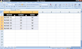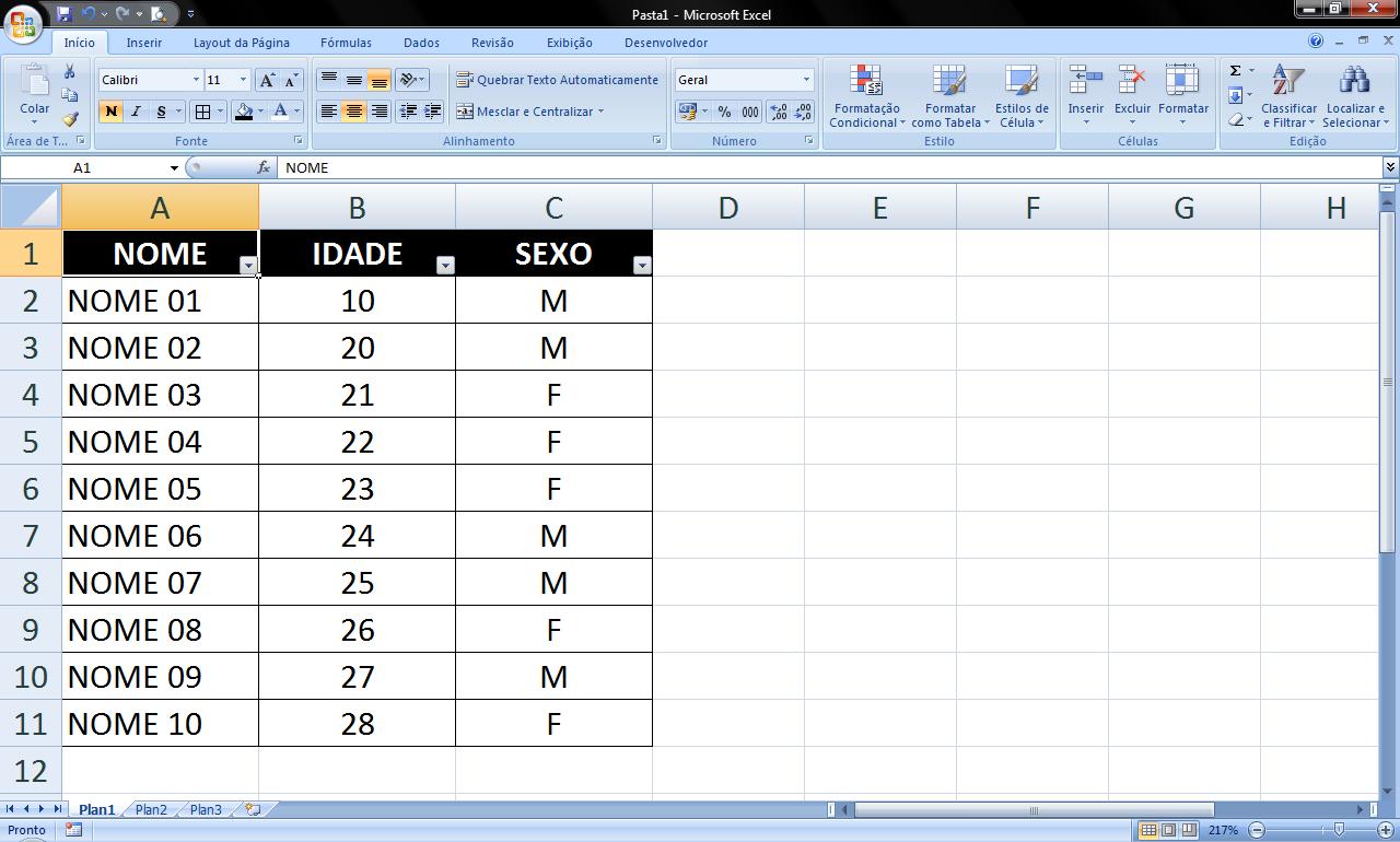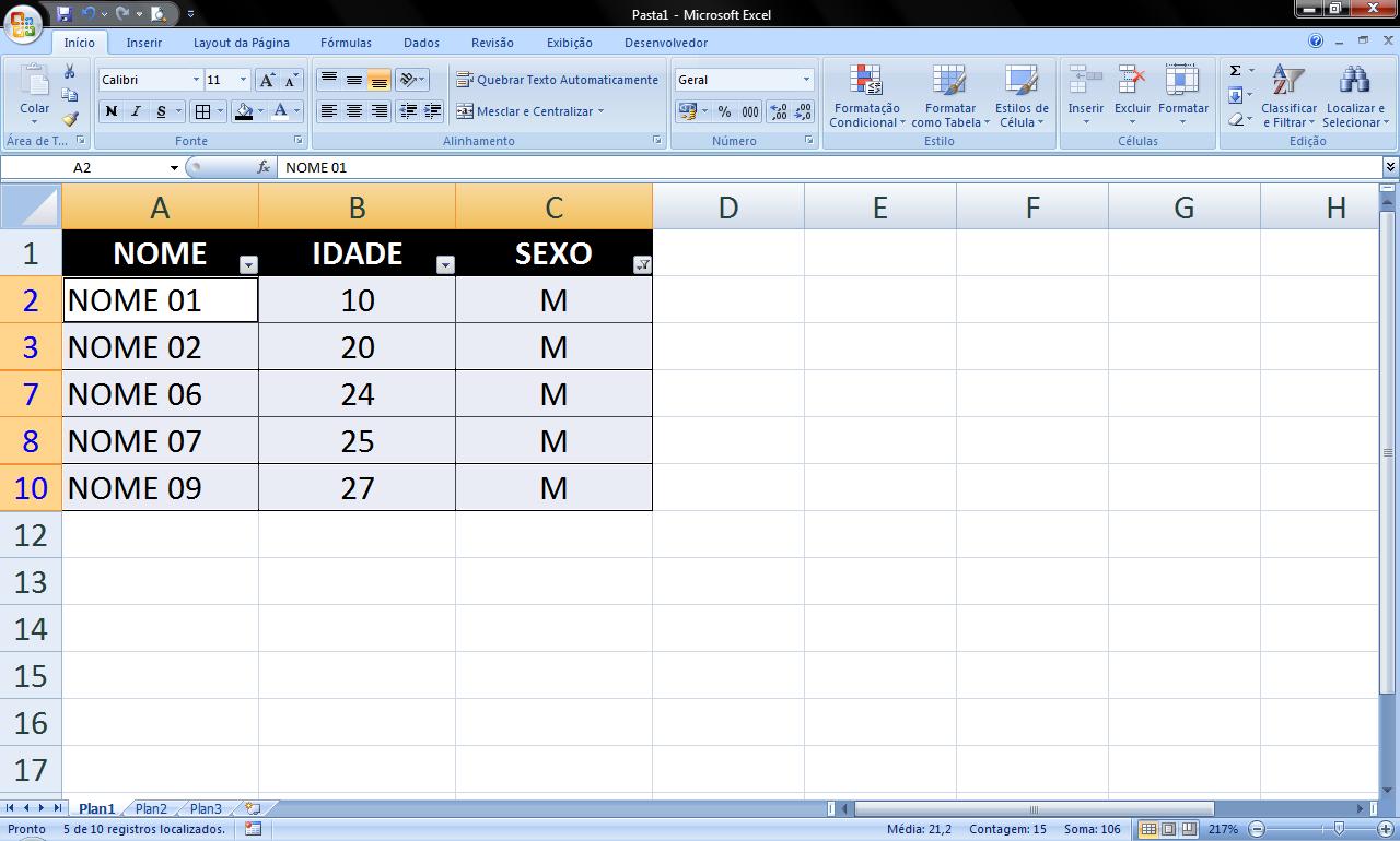 Neste exemplo quero selecionar somente células que contenham o sexo masculino.