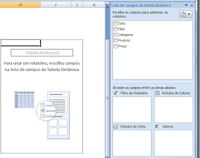 Esse painel à direita é onde podemos configurar nossa tabela dinâmica. Na parte superior desse painel são listados os campos da nossa tabela - ou seja, as colunas da tabela.