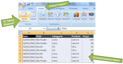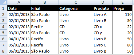 Para explicar como fazer uma tabela dinâmica no Excel, iremos usar um exemplo de uma livraria que possui filiais em São Paulo e em Recife.