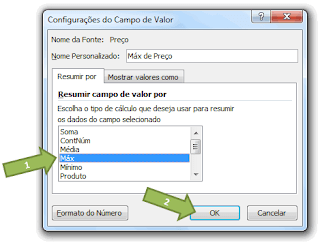Na janela que aparece, escolha o tipo de resultado que você quer e clique em OK. As opções são: Soma, ContNúm, Média, Máx, Mínimo, Produto, Contar Números, DesvPad, DesvPadp, Var, e Varp.
